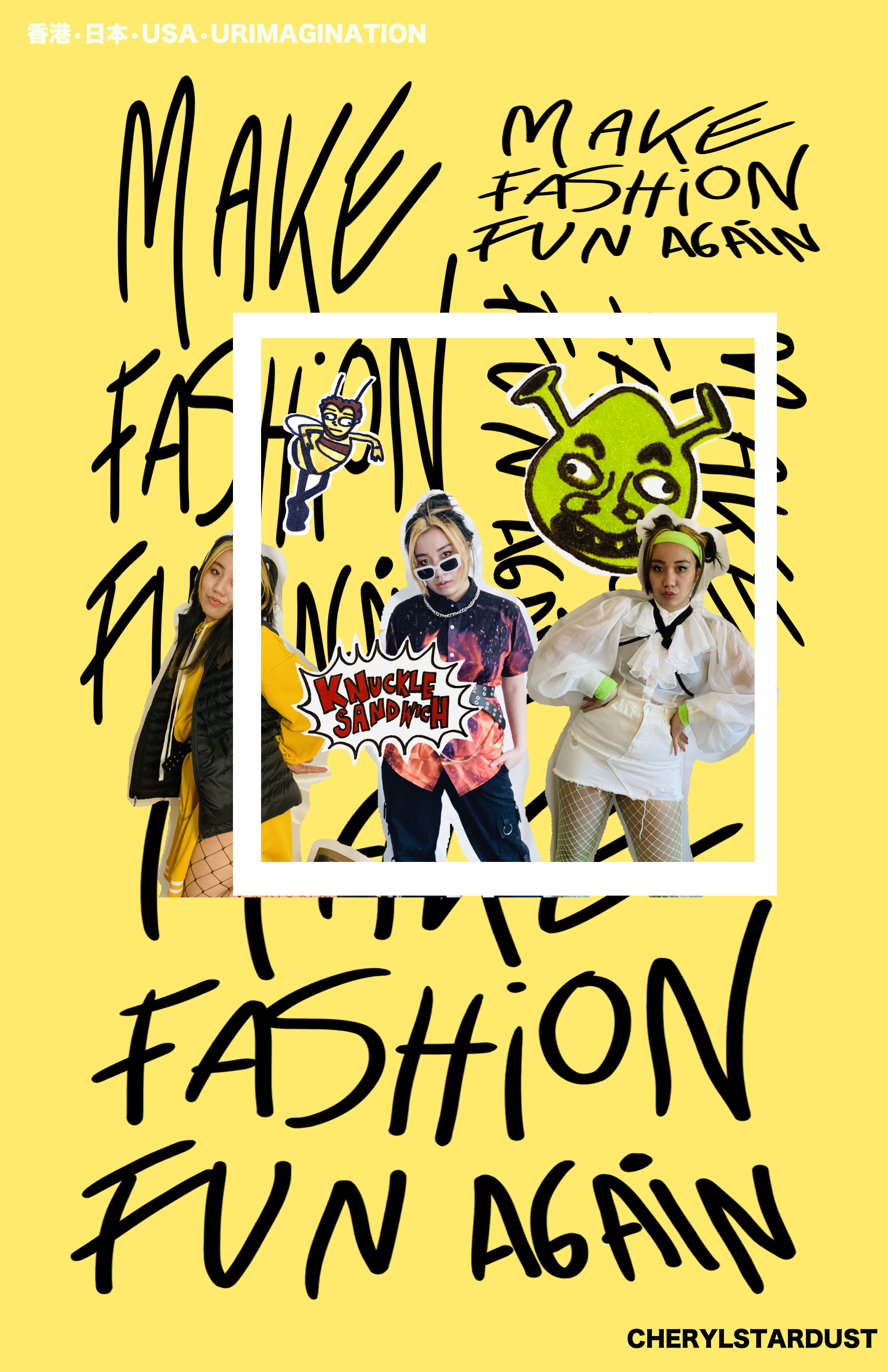 Cheryl Stardust is a multimedia artist who finds the fun in fashion through creative (and slightly--okay, very--chaotic) interpretations of style in pop culture. She draws inspiration from her queer, Asian, femme identity and memes to challenge the restrictive nature of the fashion industry. She currently produces satirical video lookbooks of popular memes and celebrities.
